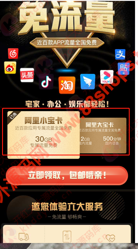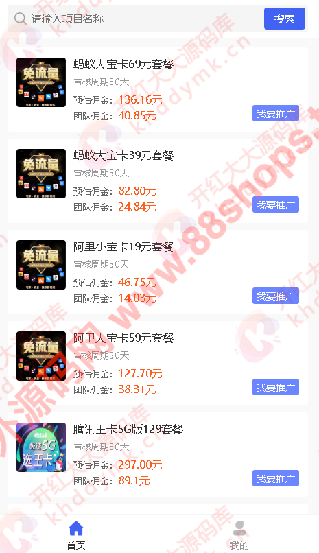 注意:源码只是一个框架,系统是需要对接第三方平台才能实现王卡注册申请之类的功能
