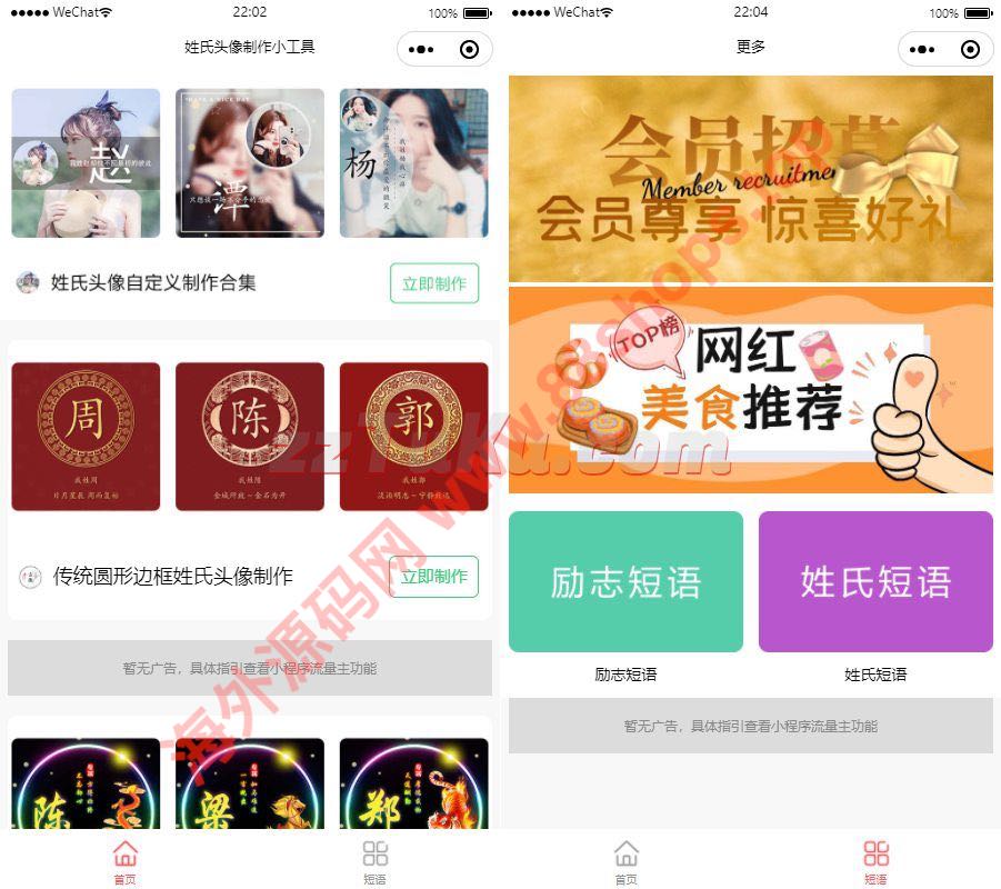 古风姓氏头像在线制作小程序源码,这个小程序最近好像是比较火,可以在线制作水墨古风头像图片,可以添加流量主,无需后台,不过内部接口好像失效了,有兴趣的自行下载研究。