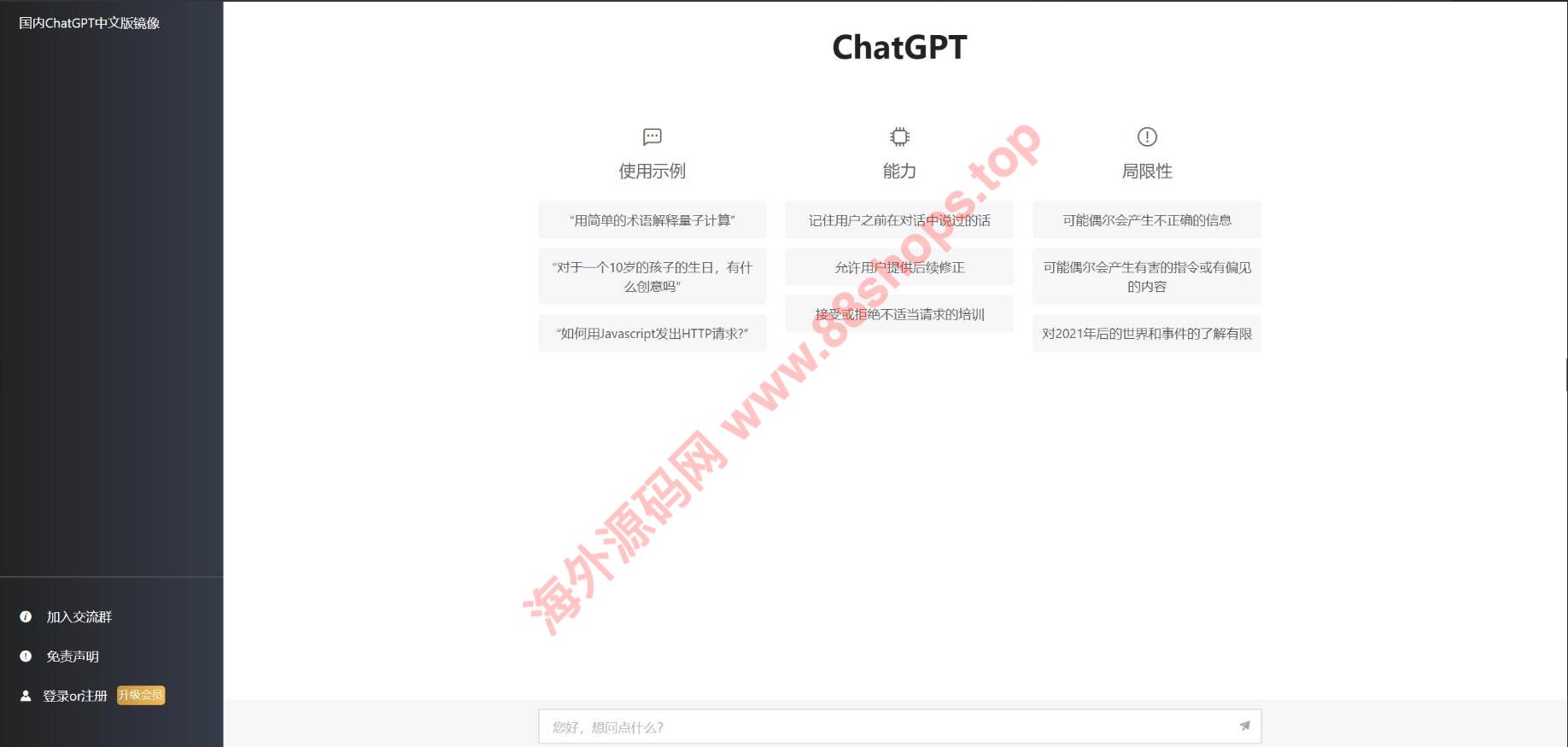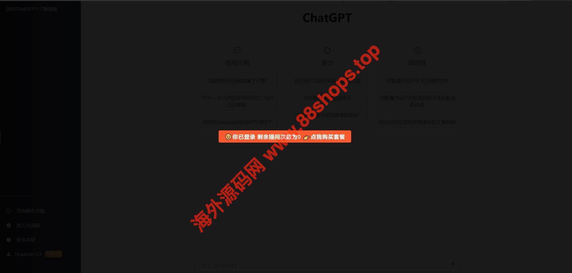支付直接对接易支付就可以了,每个IP均有免费提问一次,然后自动强制跳转登录,登录之后购买付费套餐!