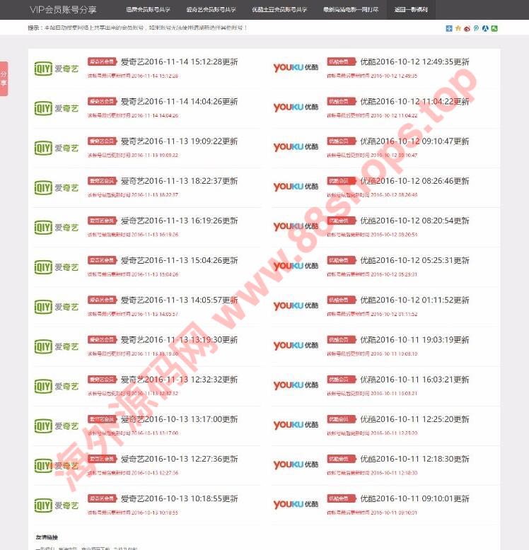 影视VIP账号资源分享网站PHP源码_爱奇艺优酷迅雷账号分享网站,全自动采集发布 迅雷优酷爱奇艺账号分享,自带自动采集帐号共享,无需人工更新内容程序使用PHP+Mysql+Tinkphp 最新 优化了些小细节,去掉自带的广告,附教程
