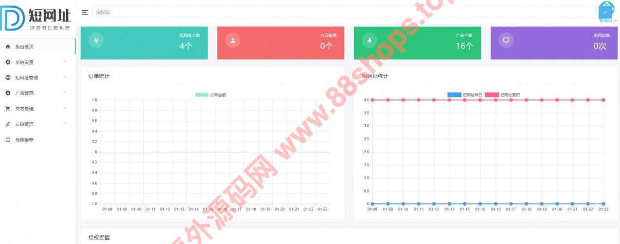 4.后台可统计短网址个数/广告个数/访问次数/每日收入图表等信息。