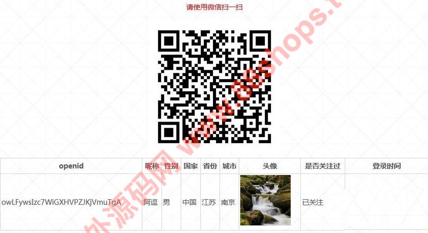 PHP判断是否首次关注公众号,扫码关注公众号获取微信用户头像、openid和省市等信息源码。