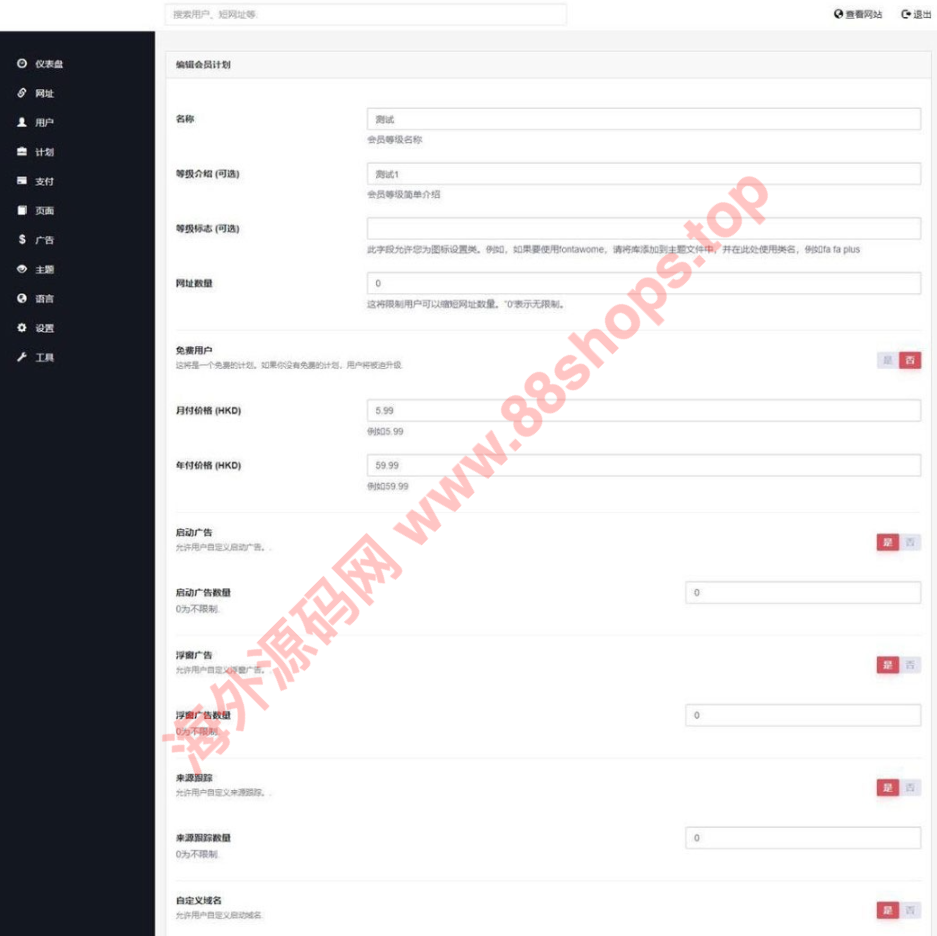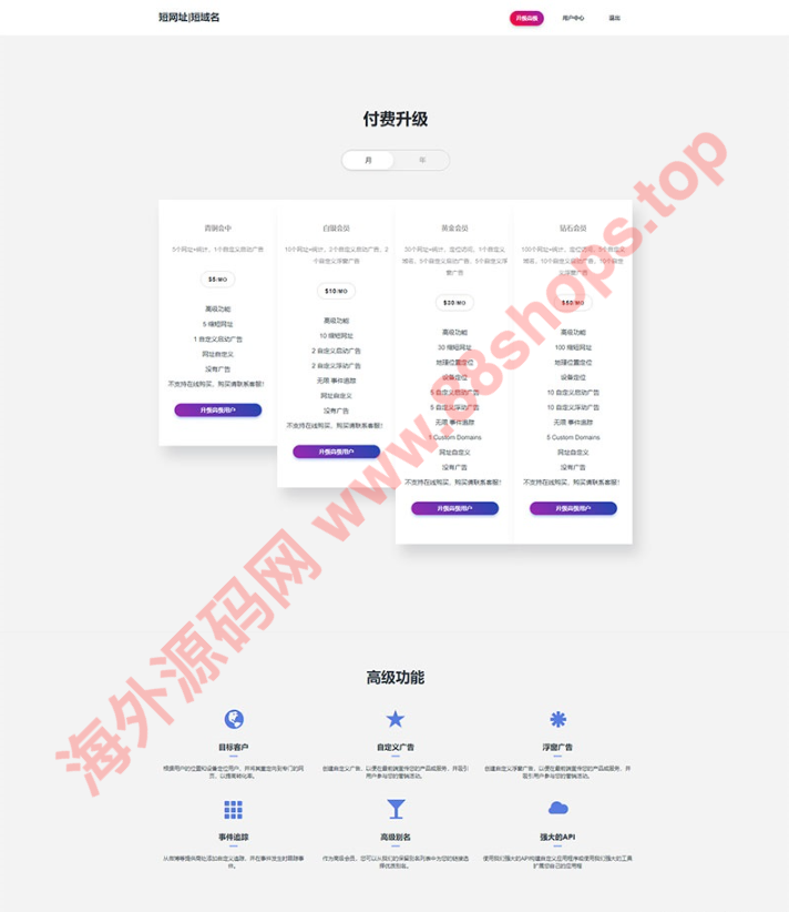 注册用户可以绑定自己域名,用来做防封。支持直连、跳转、框架、密码访问等。不用购买大量域名来做防封。支持自定义广告。 可以设置用户等级权限用来盈利。