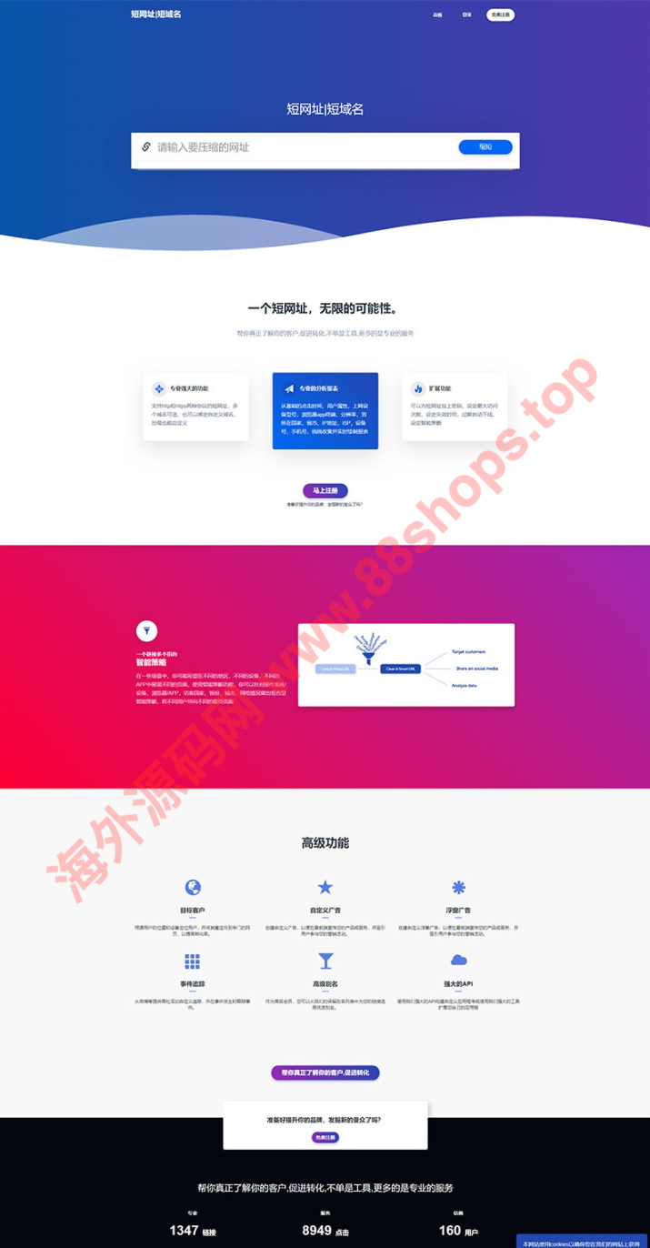 专业的短网址源码,完整的后台管理、功能齐全的用户面板、用户系统、社交分享、短网址统计、短网址自定义、多国语言支持、社交分享以及API系统等。