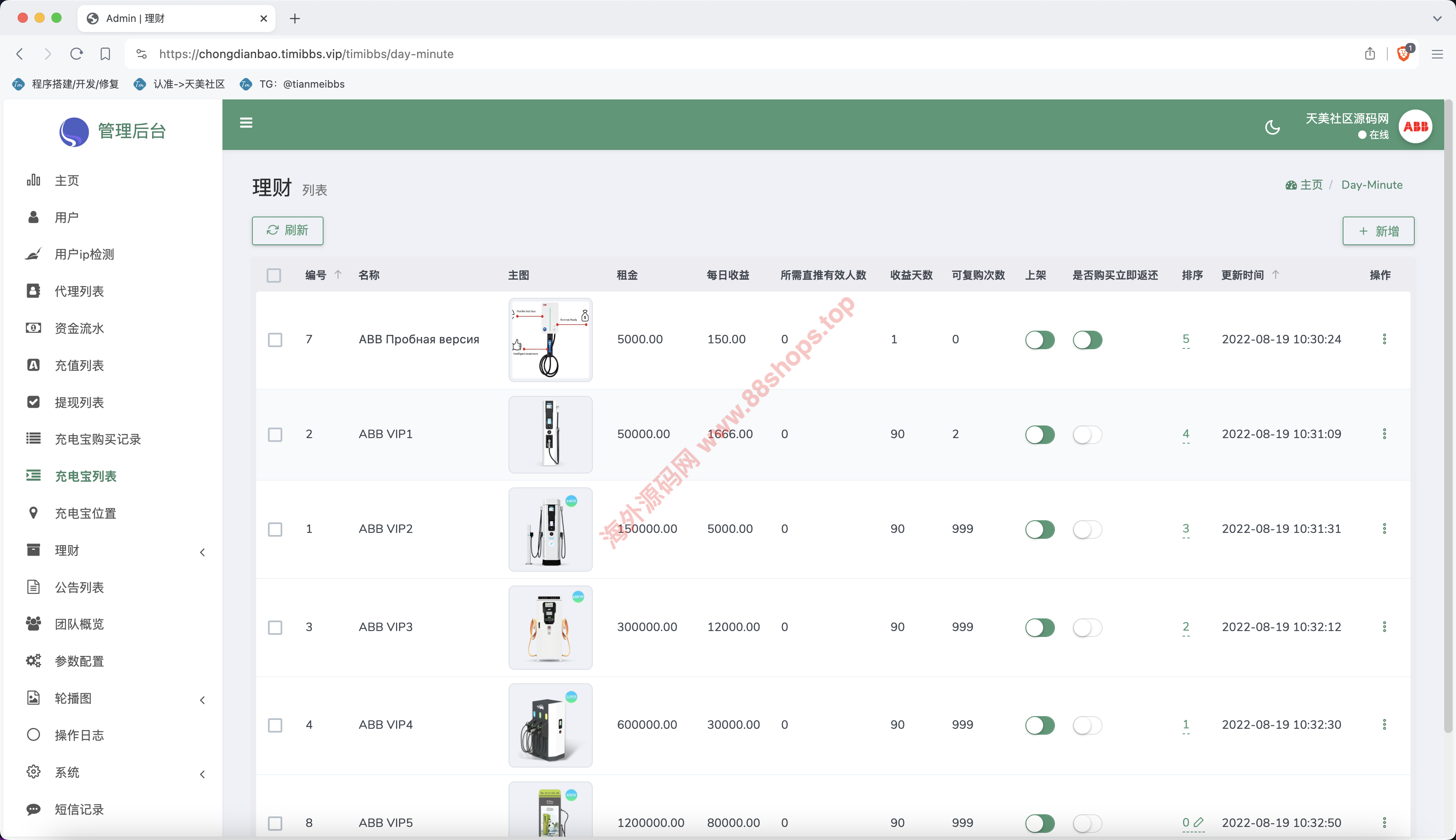 ABB双语言共享充电宝投资理财源码/五级分销返利+地图显示模式/vue编译后前端