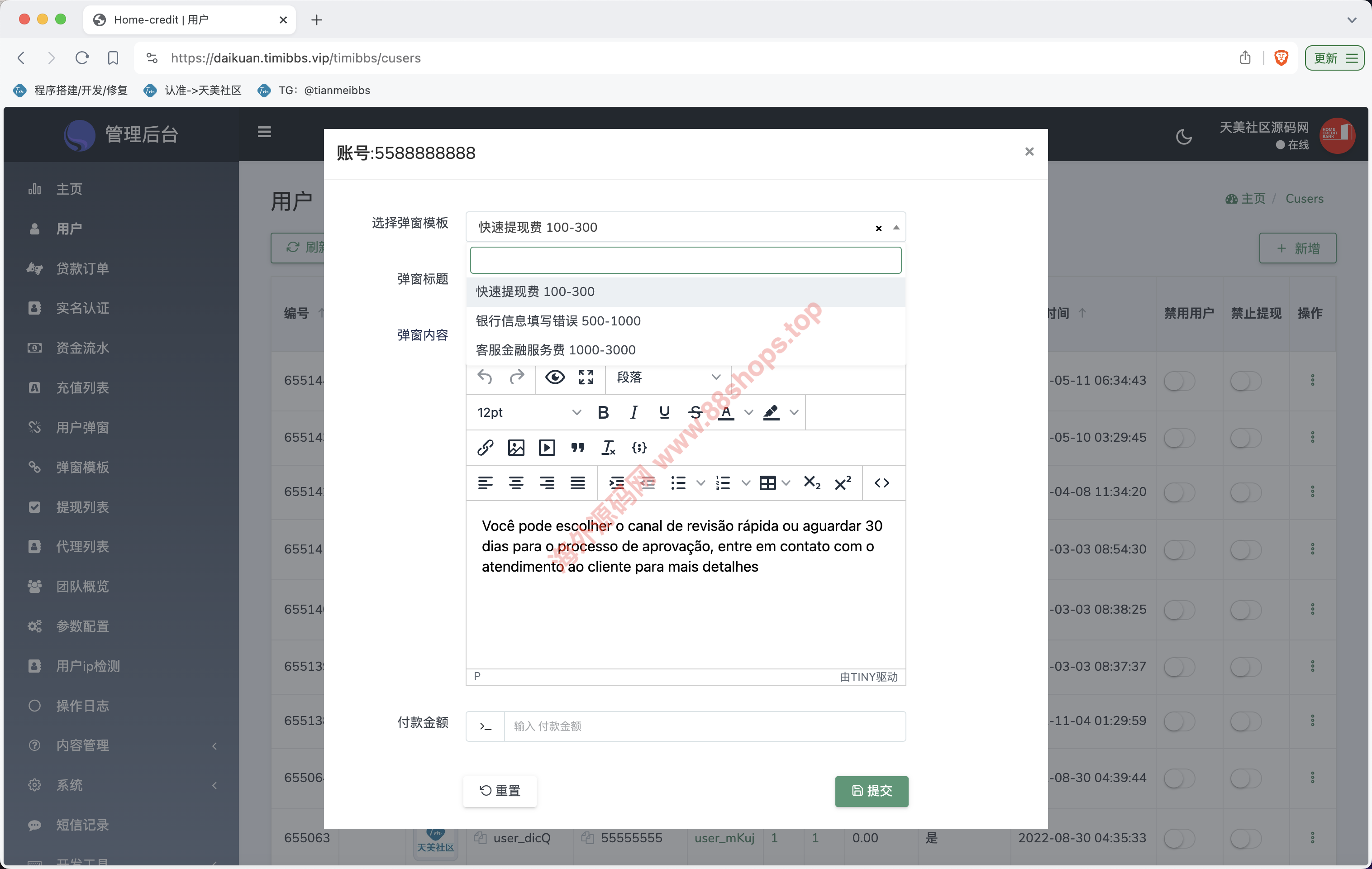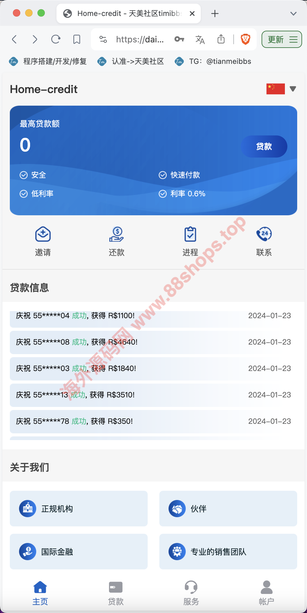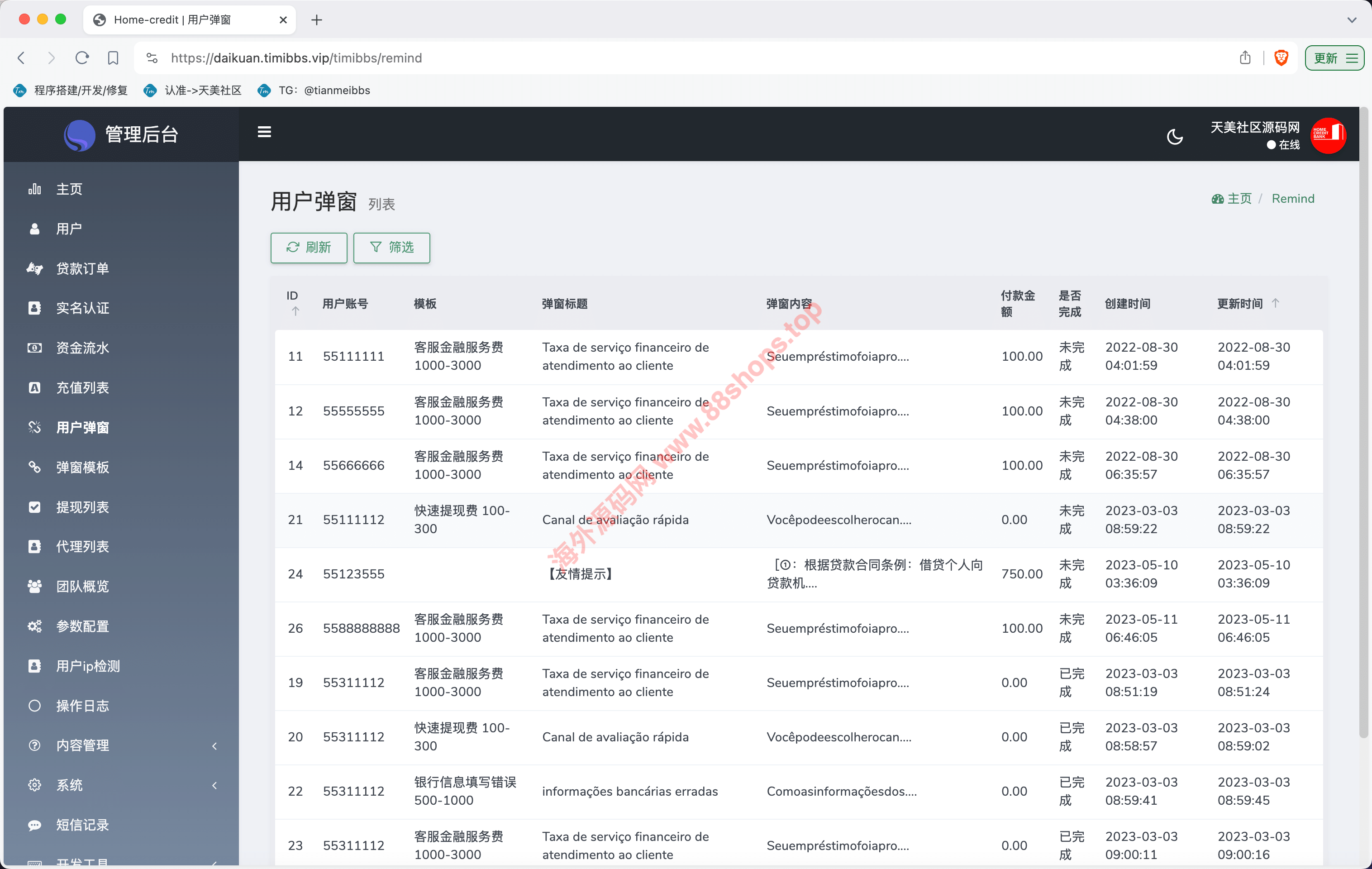 Home-credit双语言贷款信贷产品源码/用户自定义弹窗消息/vue编译后前端