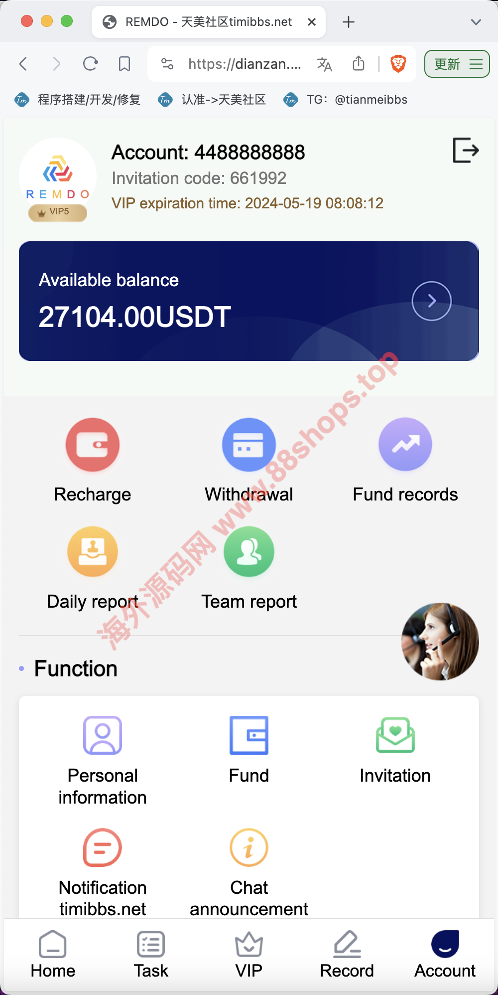 REMDO海外刷单投资理财源码/英文刷单理财盘/vue编译后前端