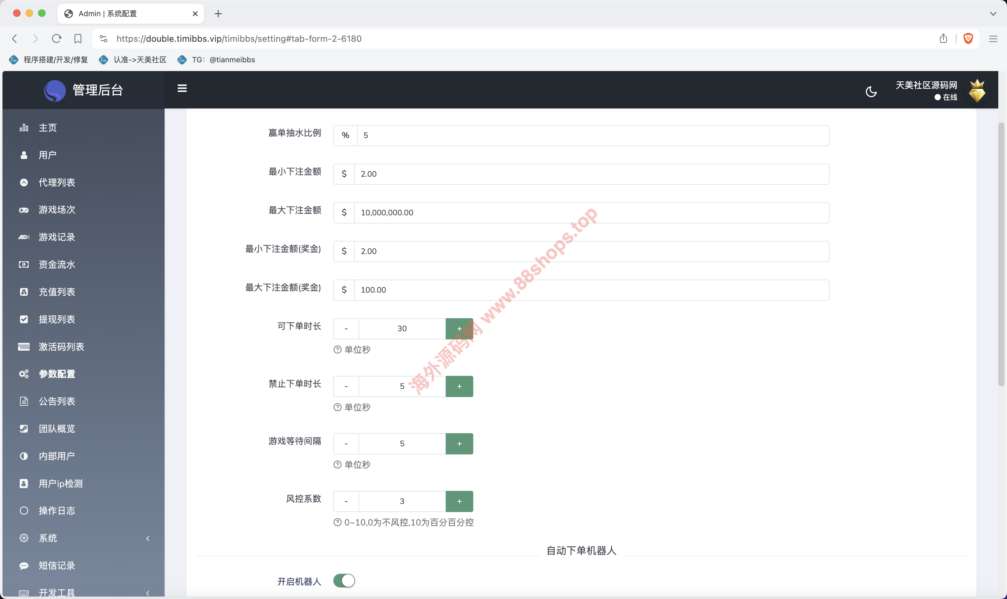 double双钻海外竞猜游戏源码/黑白红颜色竞猜下注源码/带自动下单机器人/前端vue编译后+后端PHP
