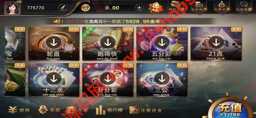 棋牌含波菜类型游戏,其中平台另外多新增一款21点游戏,这是比较适合运营的平台。