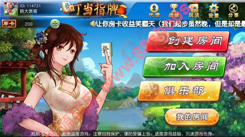 这是附带俱乐部叮当指牌,属于广西柳州以及来宾麻将玩法房卡