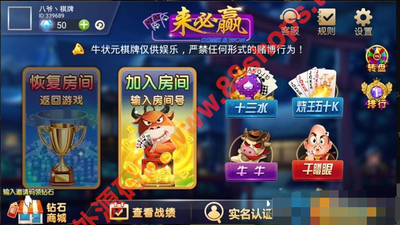 牛牛,干瞪眼,红中麻将,冲关麻将,跑的快,二十一点,斗地主,比鸡,状元牛