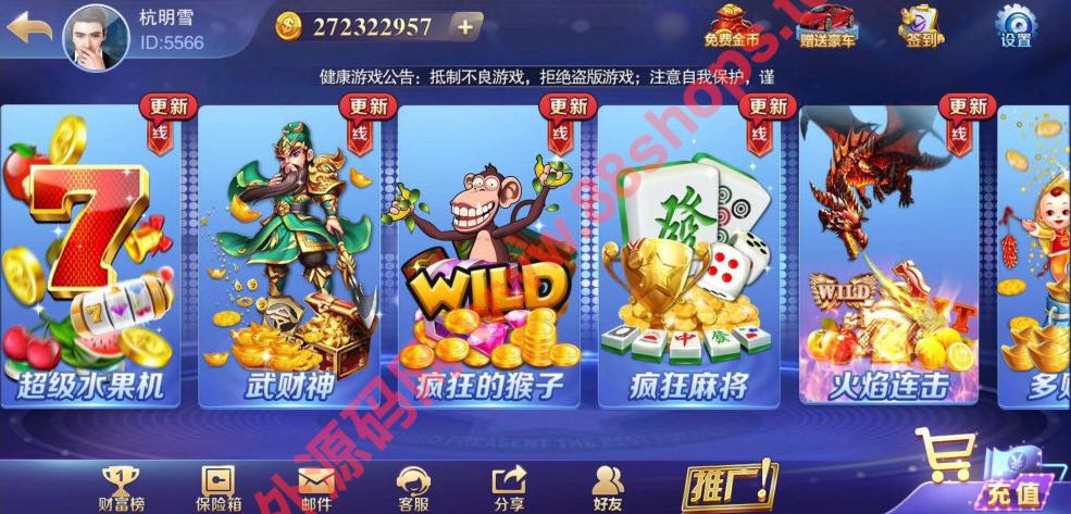 拉霸类游戏:疯狂的7、武财神、疯狂的猴子、疯狂麻将、火焰连击、多财多福、财神赐福、上海百家门、五龙争霸、三只猴子、金龙献宝、黄金龙王、恭喜发财、金鸡报喜、水浒传
